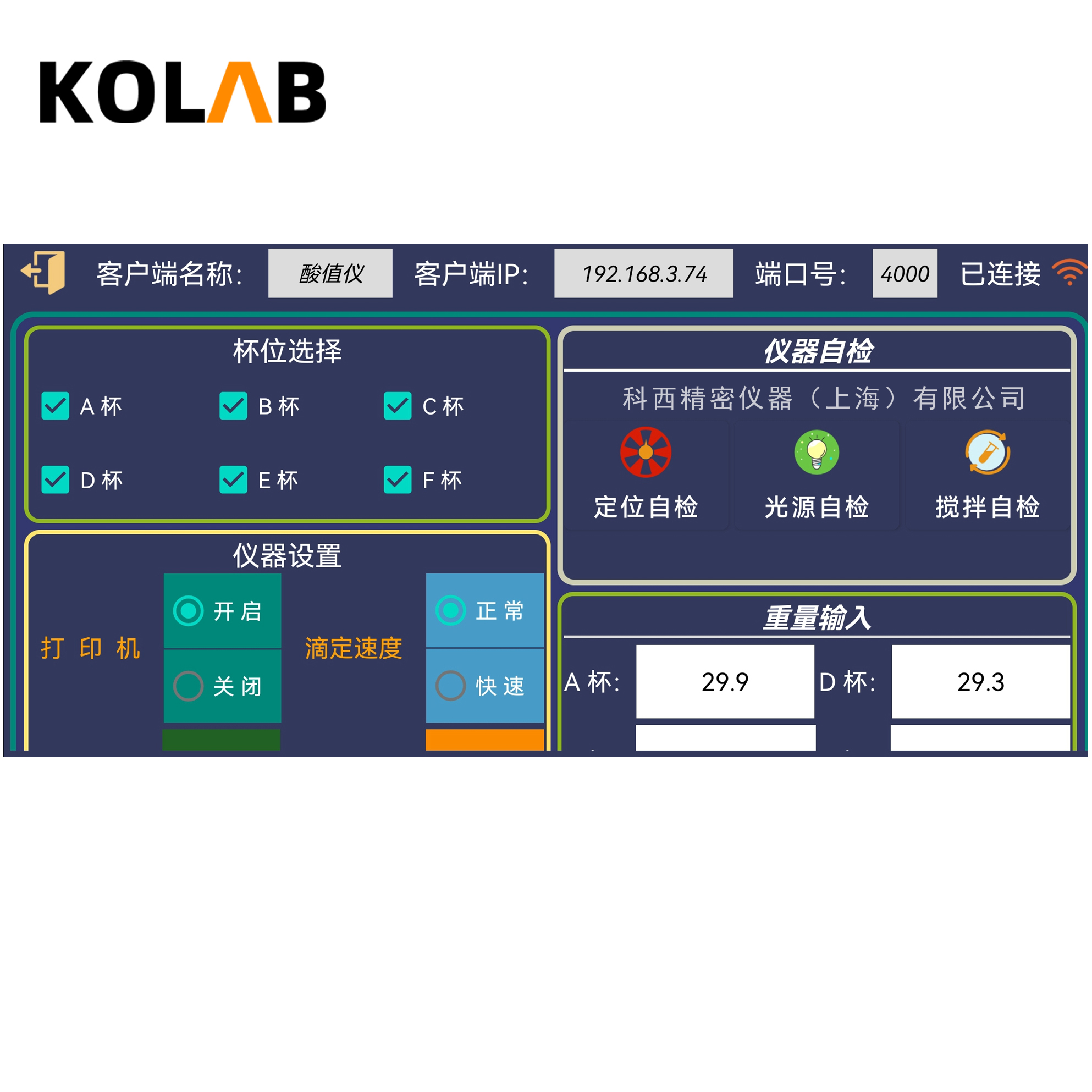 KX-ZS9000全自動酸值測定儀采用了32位高性能微處理器及HDD新技術,可同時分析幾個樣品,自動旋轉樣品杯,自動滴定樣品,自動判斷樣品的*點,自動打印測試結果,同時避免了工作人員同化學試劑的接觸,?石油產品酸值全自動測定儀使用7英寸安卓彩色觸摸屏,操作方便、清晰、直觀。安卓操作系統、上網、下載、局域網控制,數據可導出Excel表格。